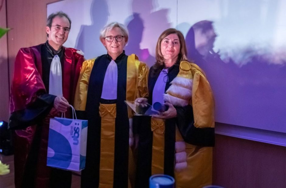 The Honoris Causa PhD award ceremony took place at the Faculty of Law, Economic Sciences and Management at UBS, and was attended by the director of FLUP, Fernanda Ribeiro.